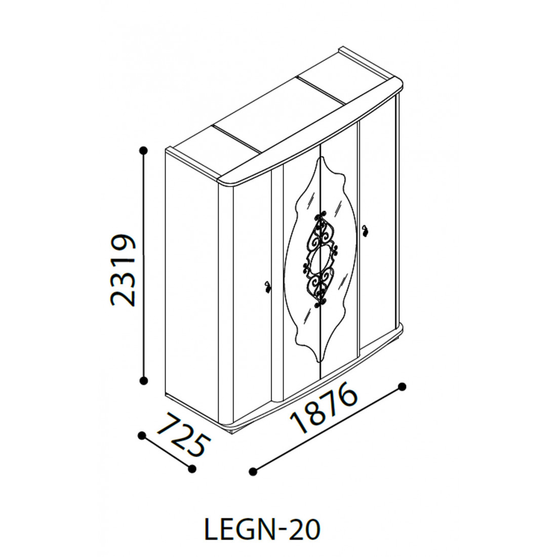 Четырехстворчатый шкаф LEGN-20 (венге) серии Легендаот Беллона, помимо практичной, многофункциональной конструкцией, обеспечивающей предельно возможную вместительность для упорядоченного и аккуратного хранения всего гардероба, наделен эффектным, стильным дизайном. В оформлении фасадов использовались кристаллы Сваровски, что добавляет модели эксклюзивности. Купить потрясающий плательный шкаф больших размеров и добротного качества можно по выгодной цене со скидкой.