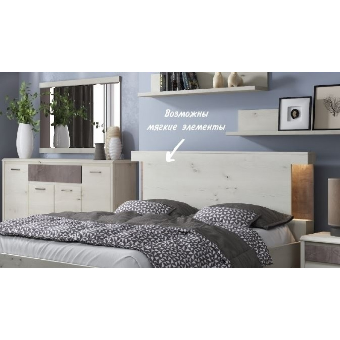 В качестве дополнительной опции к кровати вы можете приобрести подсветку и мягкую накладку 160 Бьёрк.