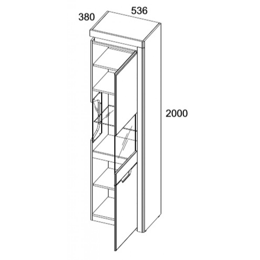 Шкаф с витриной Torino 1V1D P благодаря нетрадиционному дизайну является отличным вариантом для тех, кто всегда следует новым веяниям моды.
