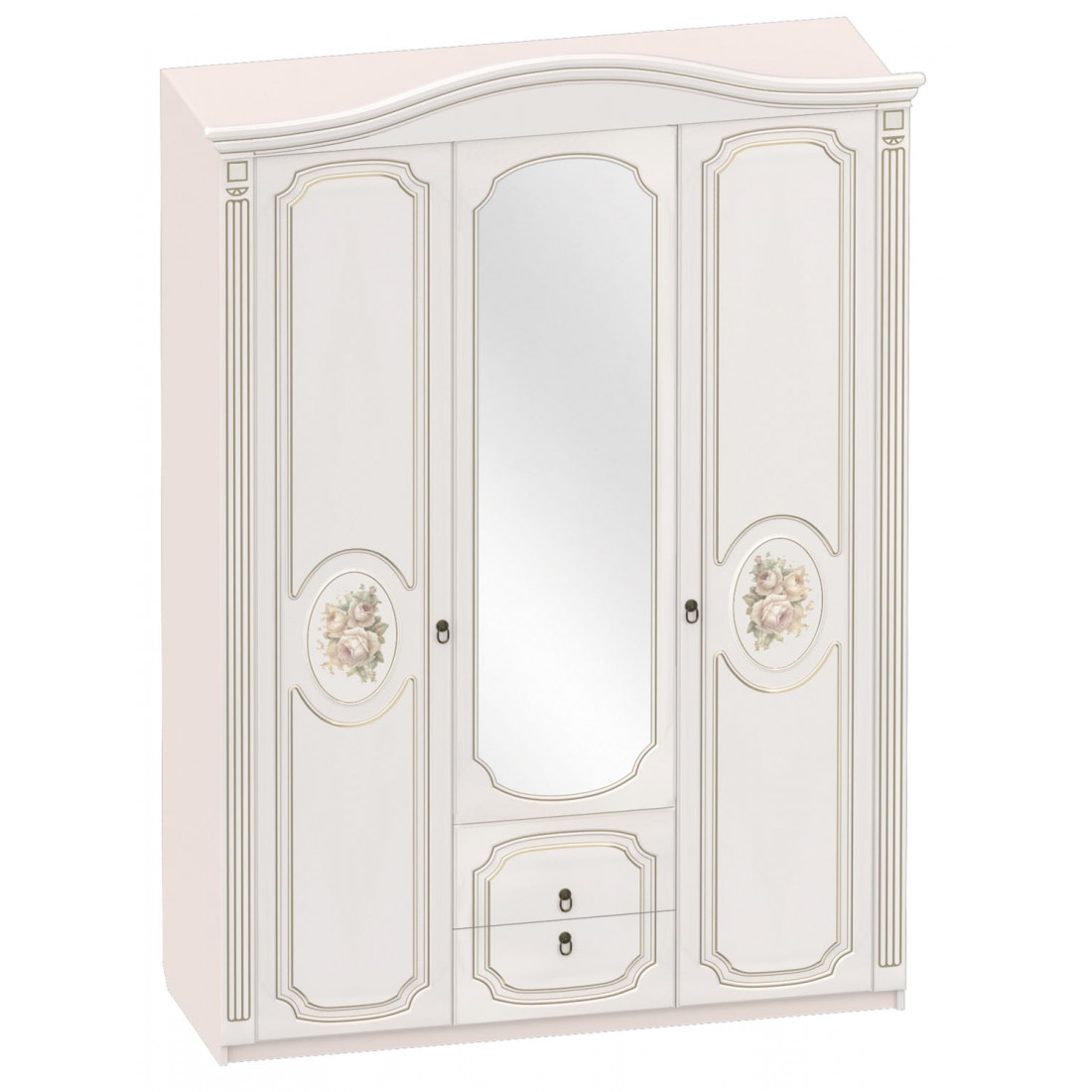 Шкаф трехдверный с зеркалом и двумя выдвижными ящиками в светлом цвете "Кофе10 /Капучино" гармонично дополнит Вашу спальню Верона. Внутри боковое отделение с полками для удобного хранения одежды и белья, а также большое отделение со штангой и полкой.