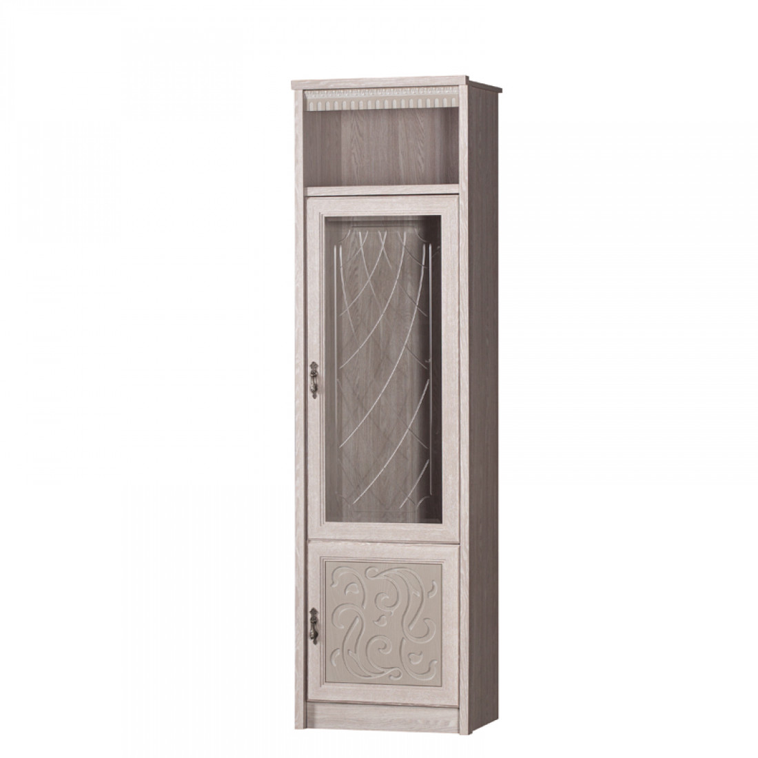 Фасады: МДФ, декор – дуб оксфорд серый, патина, зеркало с фацетом