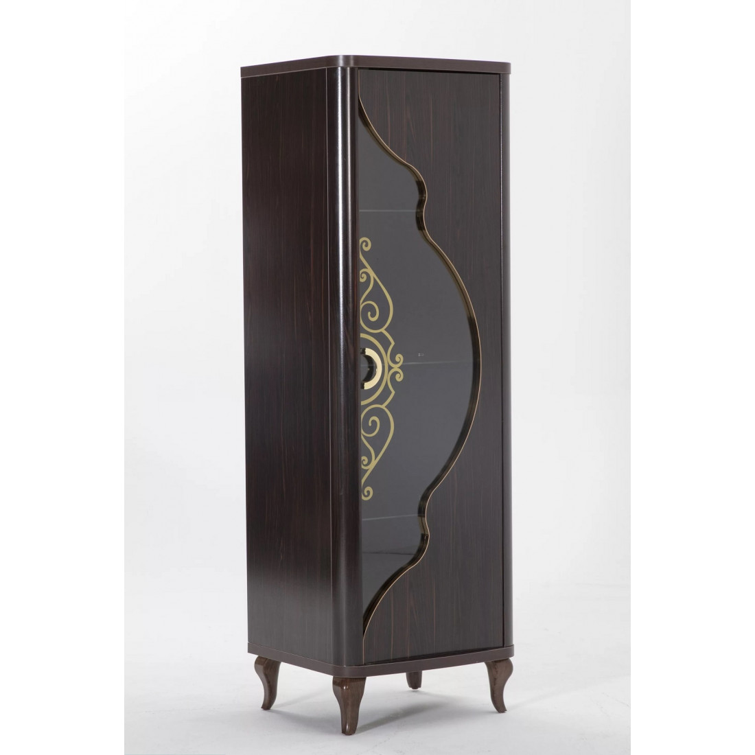 Дизайн шкафа для посуды "Легенда" определенно заслуживает Вашего внимания. Изделие представлено в классическом белом стиле с золотистыми рисунками на стеклянных дверцах и белыми изогнутыми сужающимися к полу ножками. За счет использования высококачественных материалов, удалось добиться долговечности данного изделия.