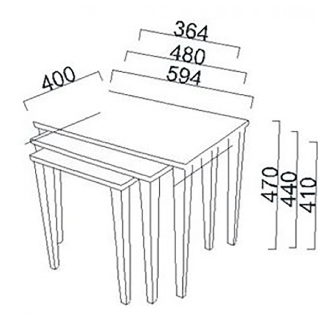 Набор из трех журнальных столиков Mavenna разного размера. При необходимости можно собрать в один или разместить по одному в разных частях дома. Размер столиков: 59х40х47 см, 48х40х44 см, 36х40х41 см.