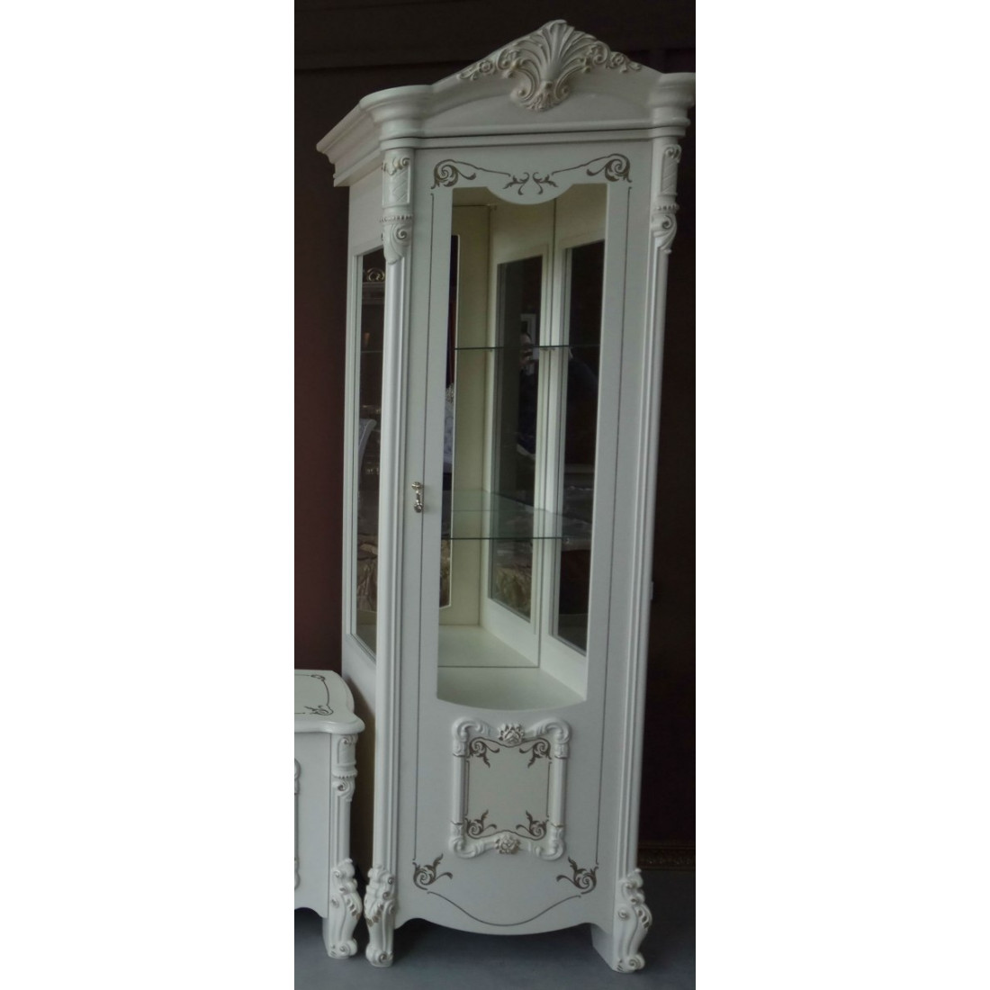Шкаф-витрина однодверная Рафаэлла (беж) от Российской фабрики «ДИА мебель», выполнен в элегантном бежевом цвете.