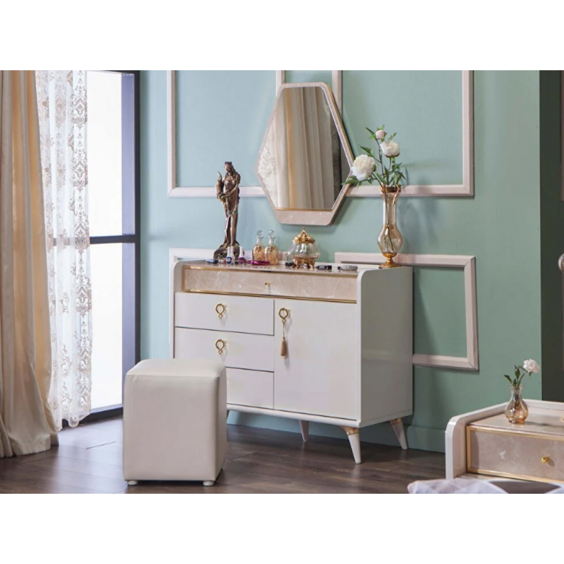 Зеркало Monreal дополняет спальню или гостиную этой серии. Можно использовать как самостоятельный элемент декора. Размер зеркала -60х70 см Серия снята с производства